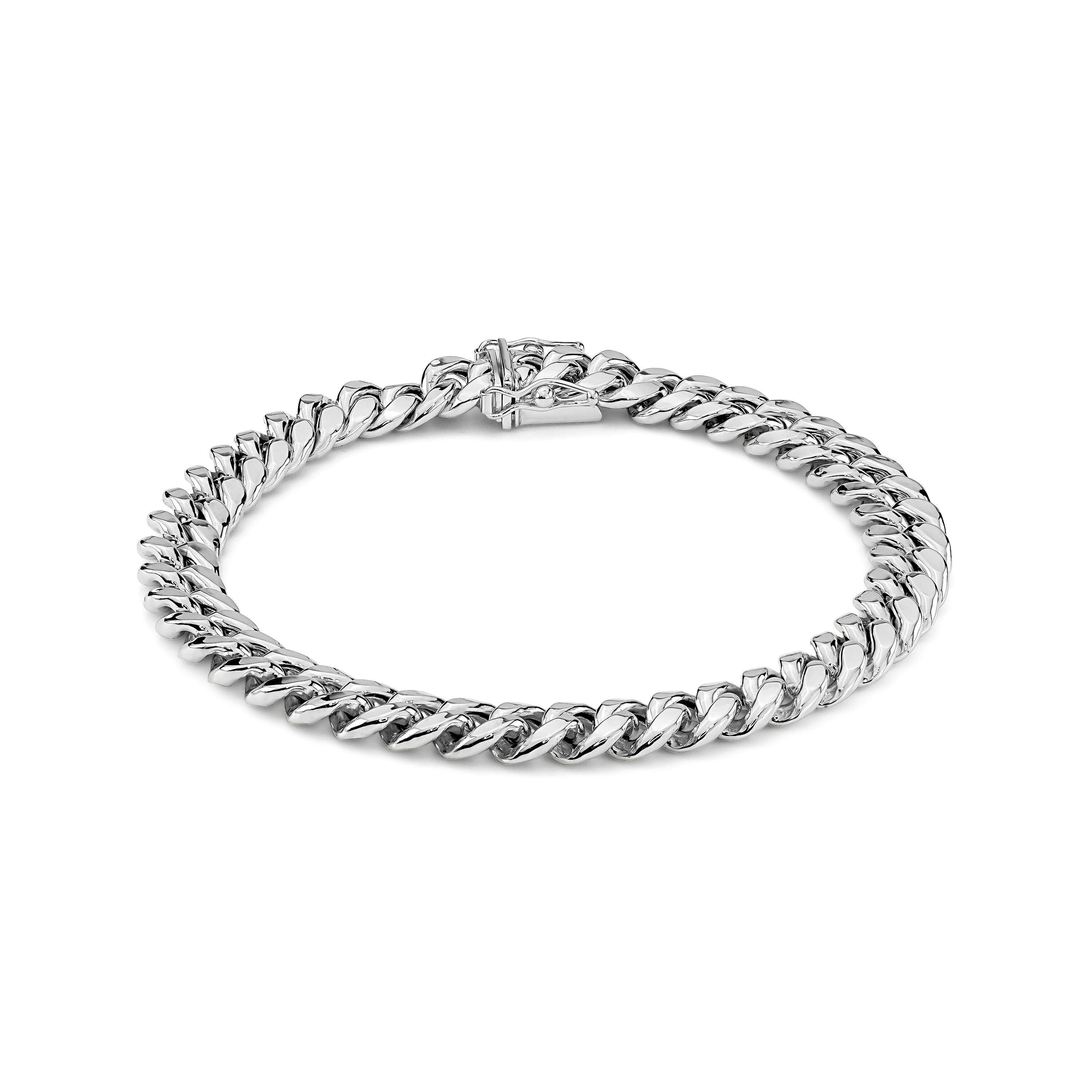 14k White Gold Classic Miami Cuban Bracelet/Anklet (Solid)
