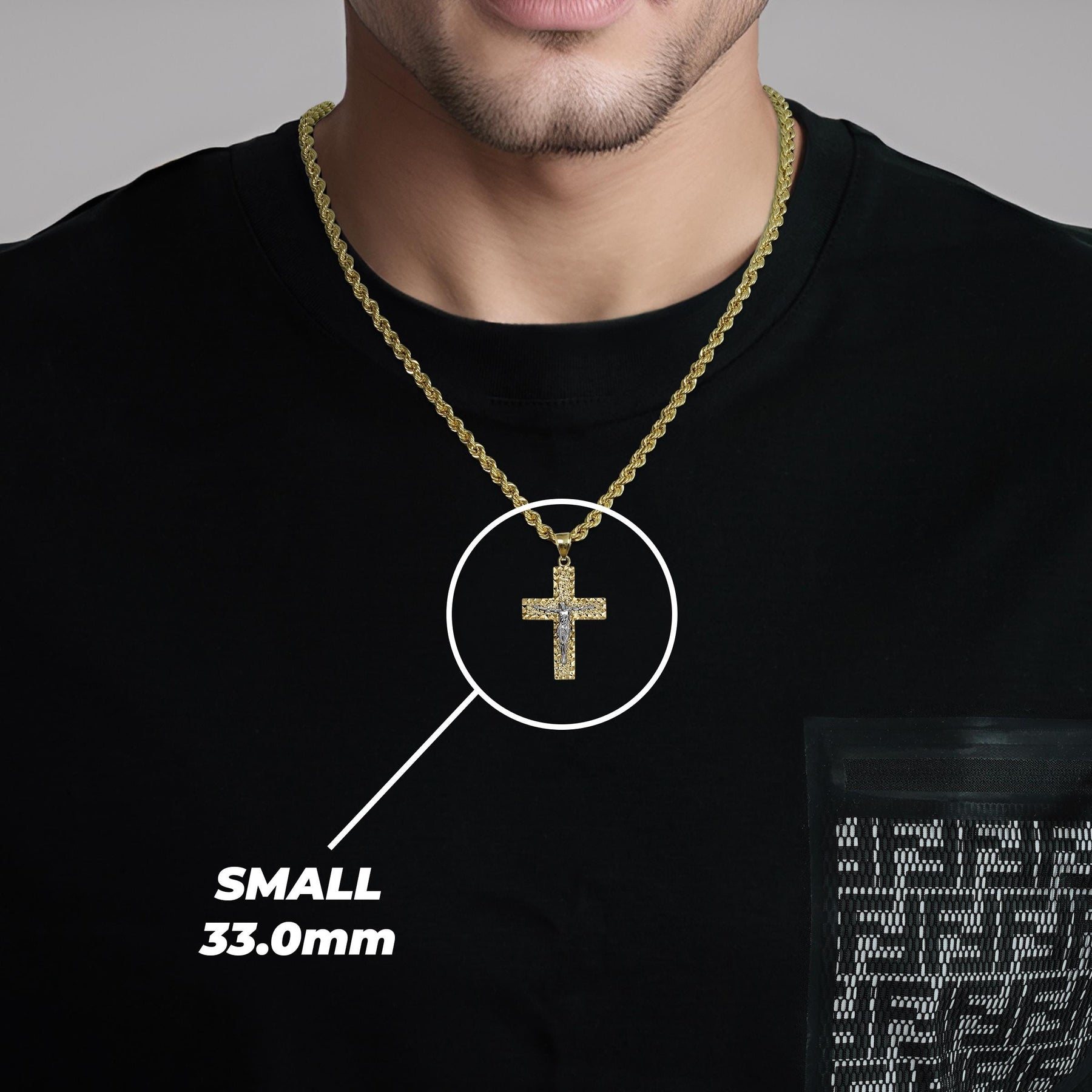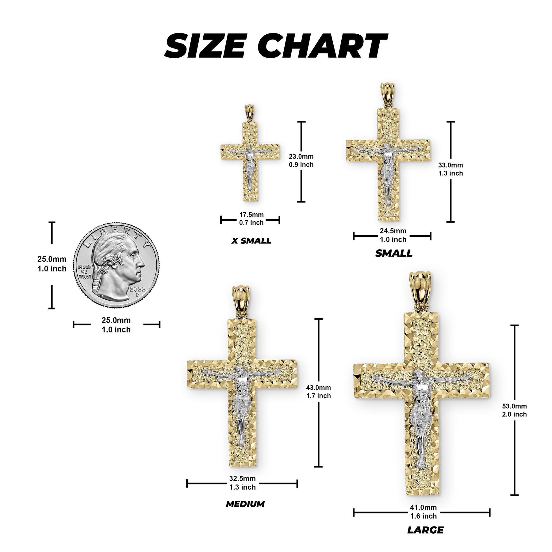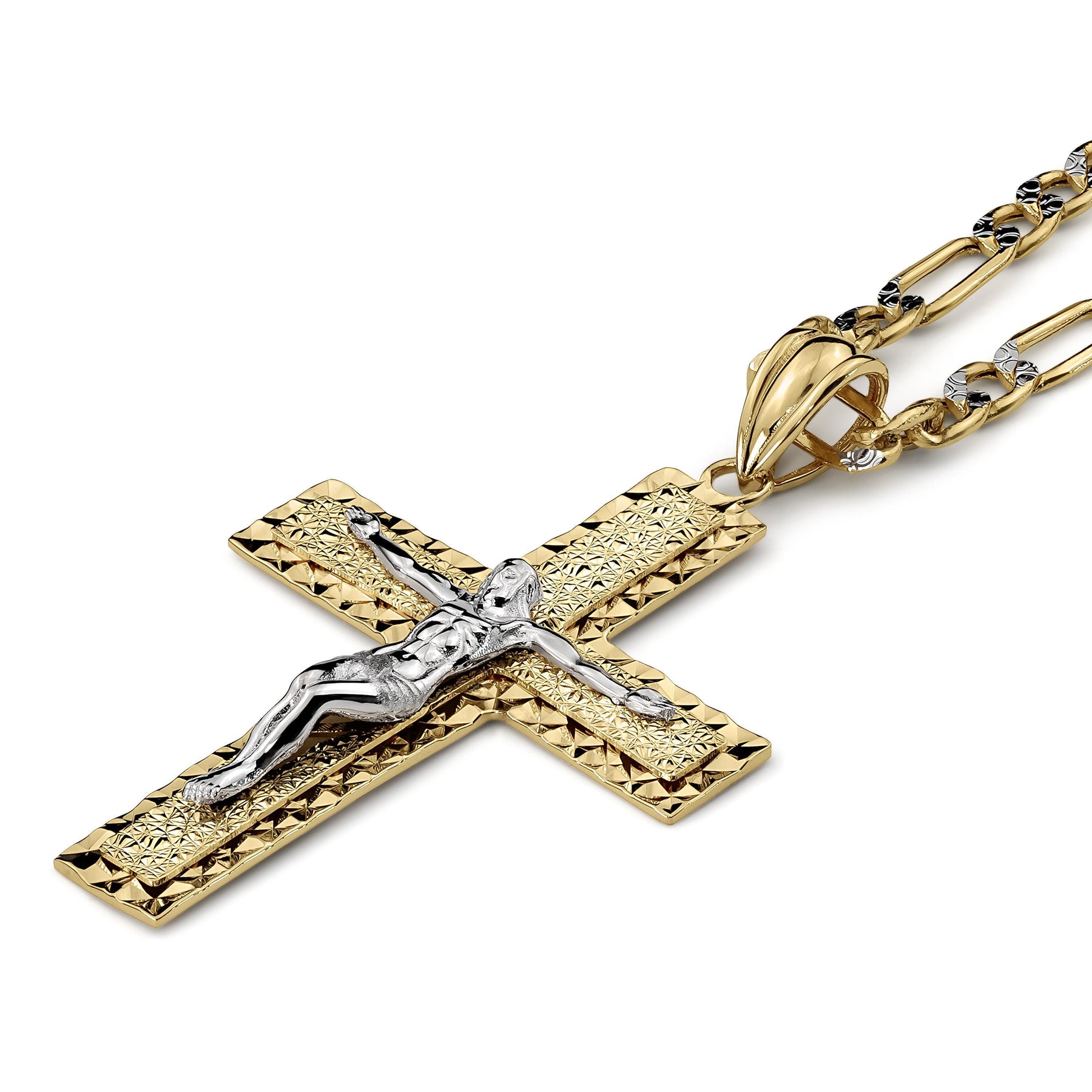 10k & 14k Gold Vincent Two-Tone Crucifix Nugget Cross Pendant Necklace