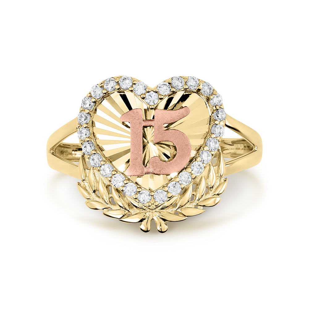 10k & 14k Gold Quinceanera Two-Tone Heart Wing Ring