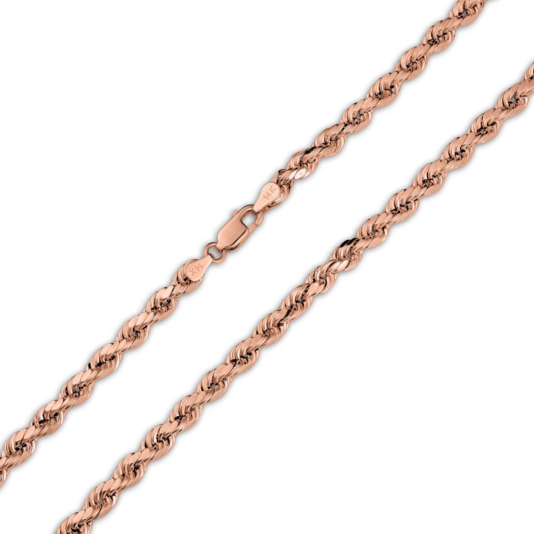 Add a touch of sophistication with this 10k & 14k Rose Gold Rope Classic Diamond-Cut Chain Link Necklace. Designed for both men and women, the necklace features a classic rope pattern with diamond-cut detailing for a refined shine. Made from solid 10k & 14k rose gold, it combines durability with timeless style. Ideal for any occasion, it serves as a perfect gift or a standout piece in your jewelry collection. Enjoy the luxury and elegance of solid gold with every wear.