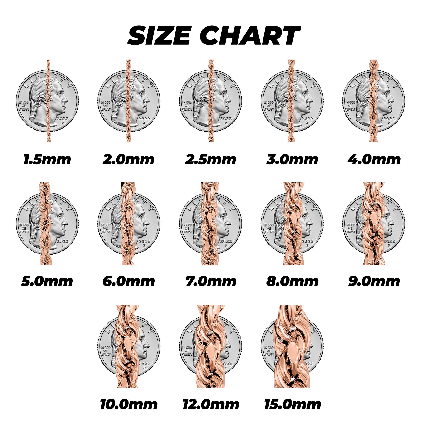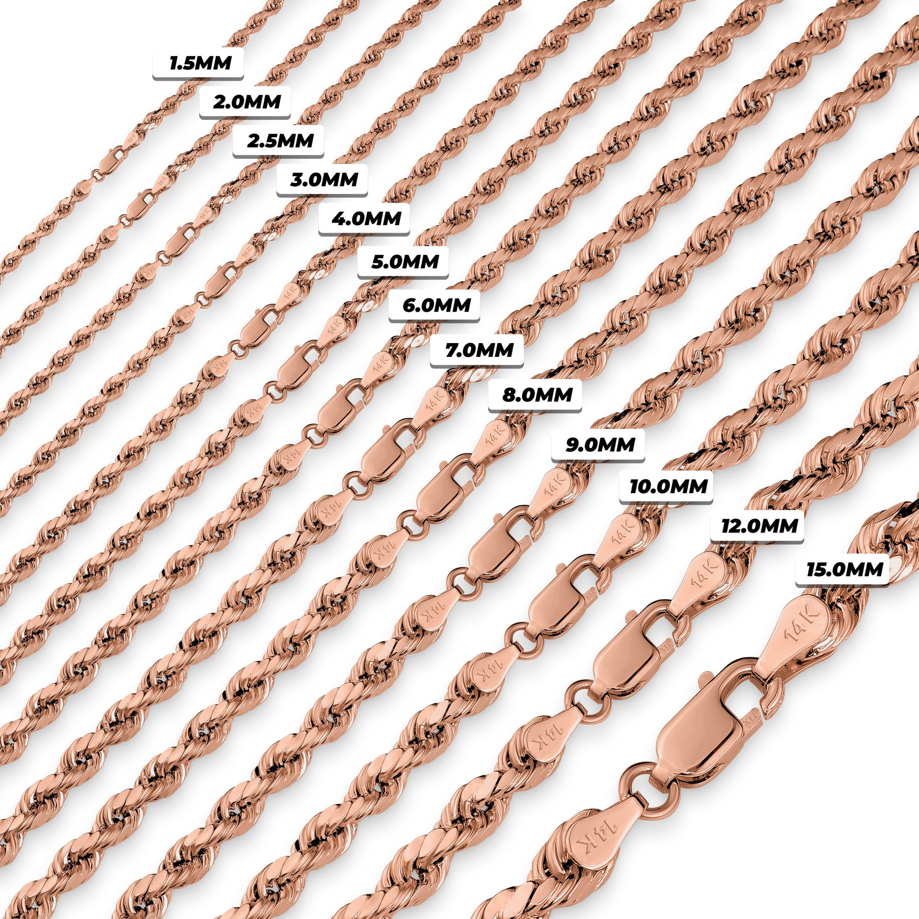 10k & 14k Rose Gold Classic DC Rope Chain (Solid)