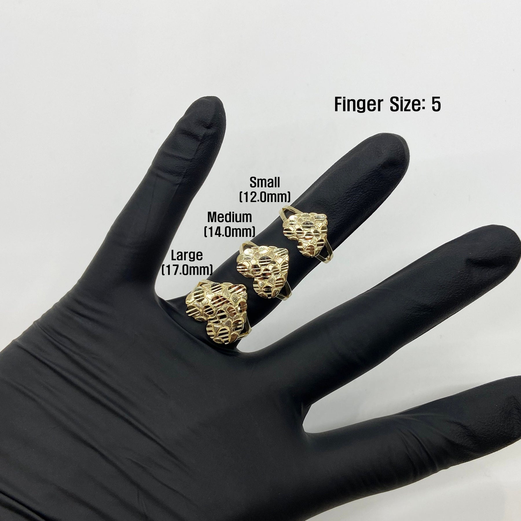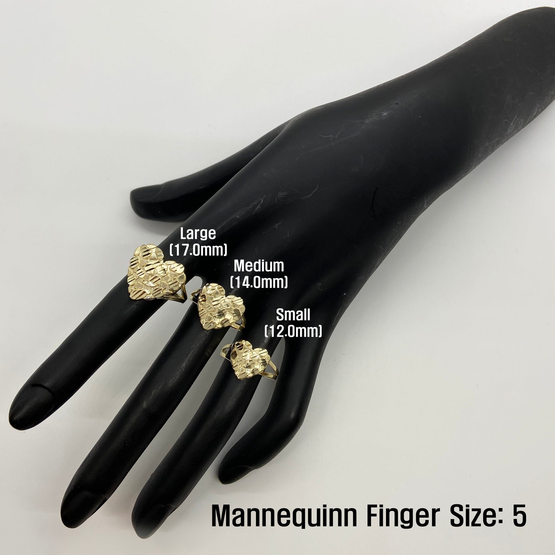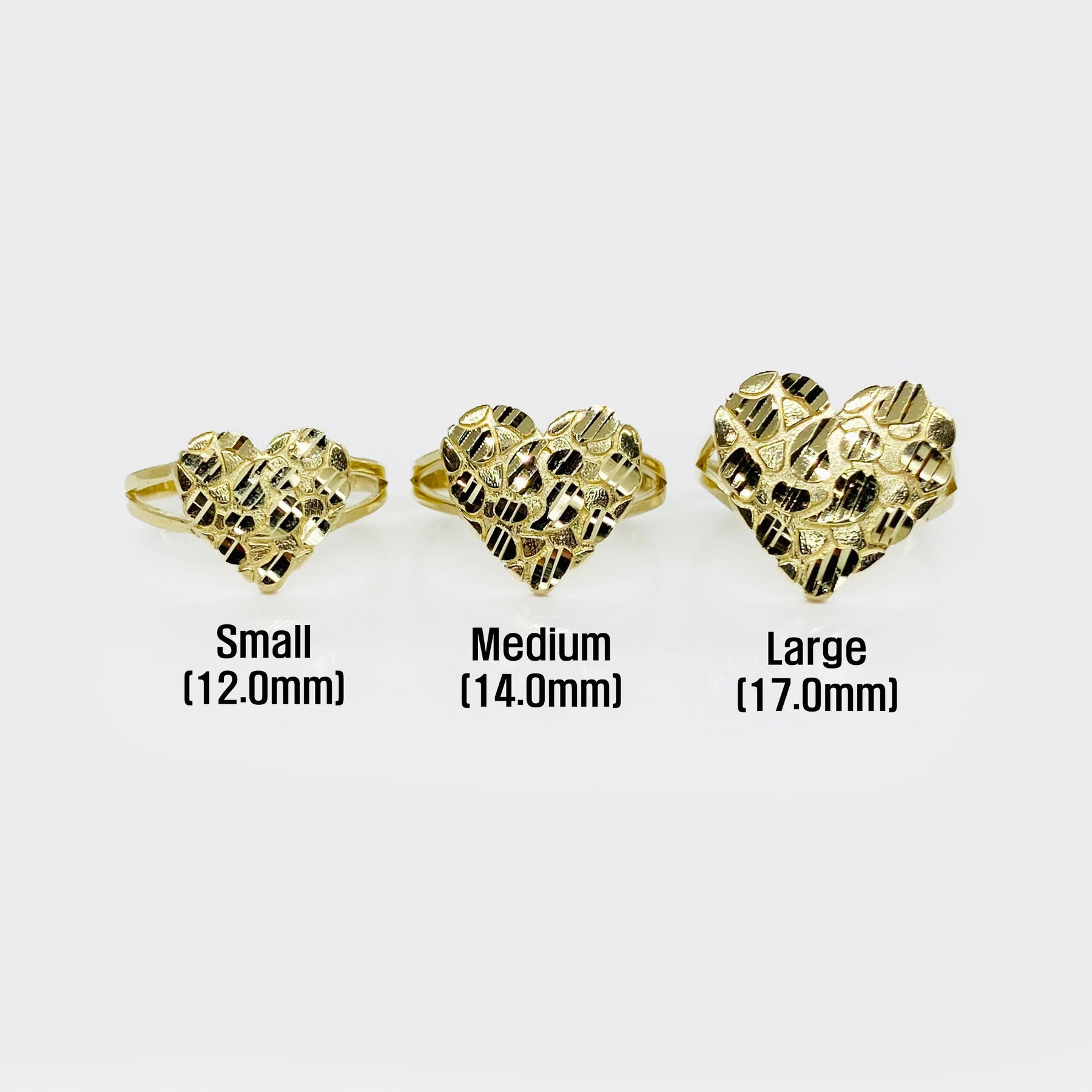 Offered in three different heart sizes, this ring makes a versatile statement piece—whether worn as a pinky ring, statement ring, or everyday accessory. Its durable build and eye-catching design make it a standout in any gold jewelry collection.
