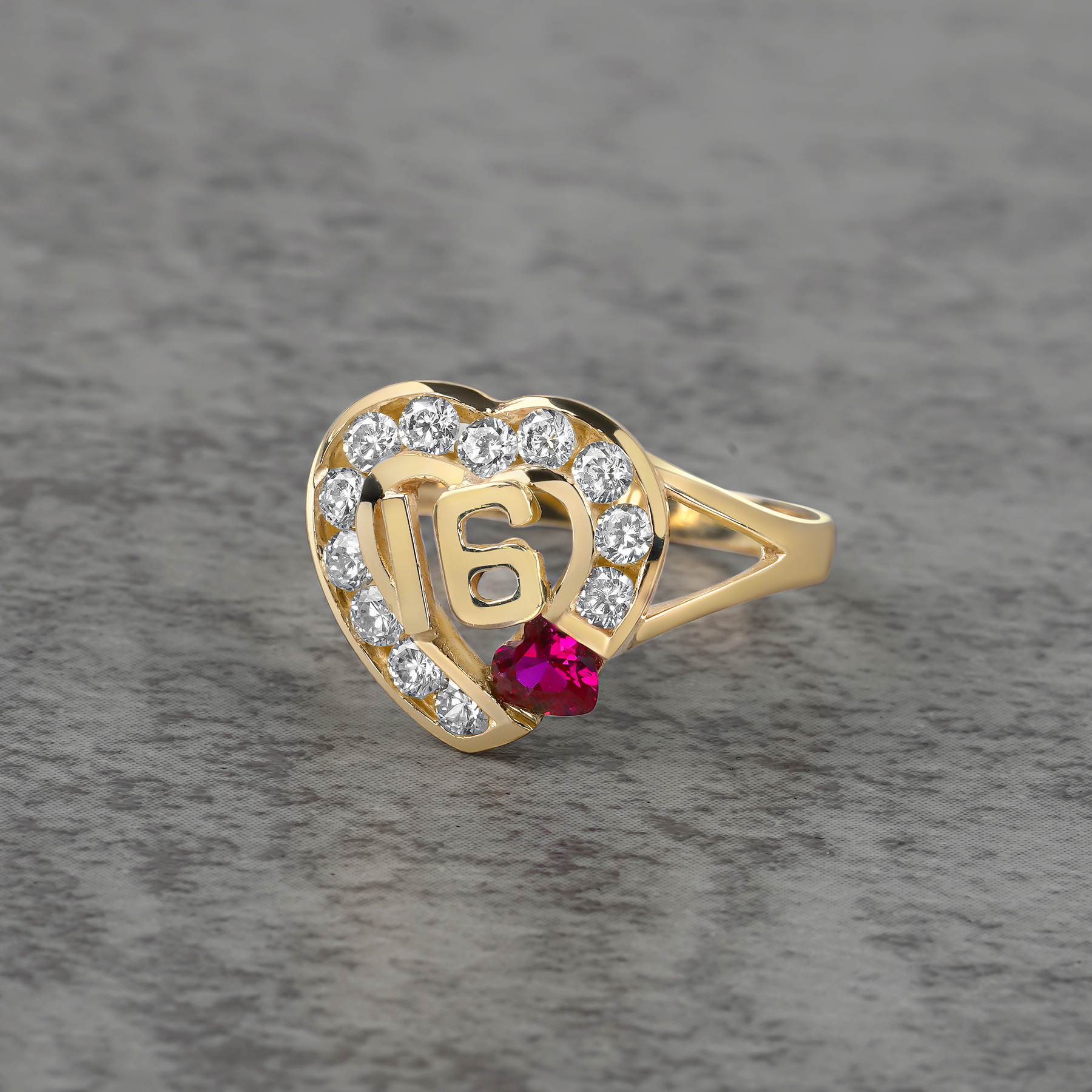 Celebrate a special milestone with this beautiful “16” heart ring, crafted in real 10K or 14K solid gold. Designed as a meaningful Sweet 16 ring or birthday ring, it features a heart-shaped center with the number 16, surrounded by sparkling CZ (cubic zirconia) stones for a brilliant, eye-catching shine.