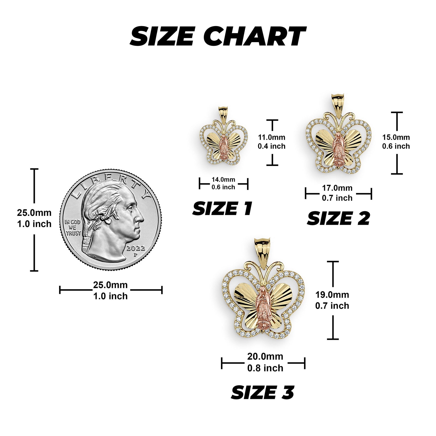Choose between three sizes of the intricately designed butterfly to perfectly suit your style. Whether as a thoughtful gift for her or an elegant addition to your own ensemble, this pendant embodies grace and spirituality—making it a cherished accessory for any occasion. Celebrate beauty and belief in one remarkable piece.