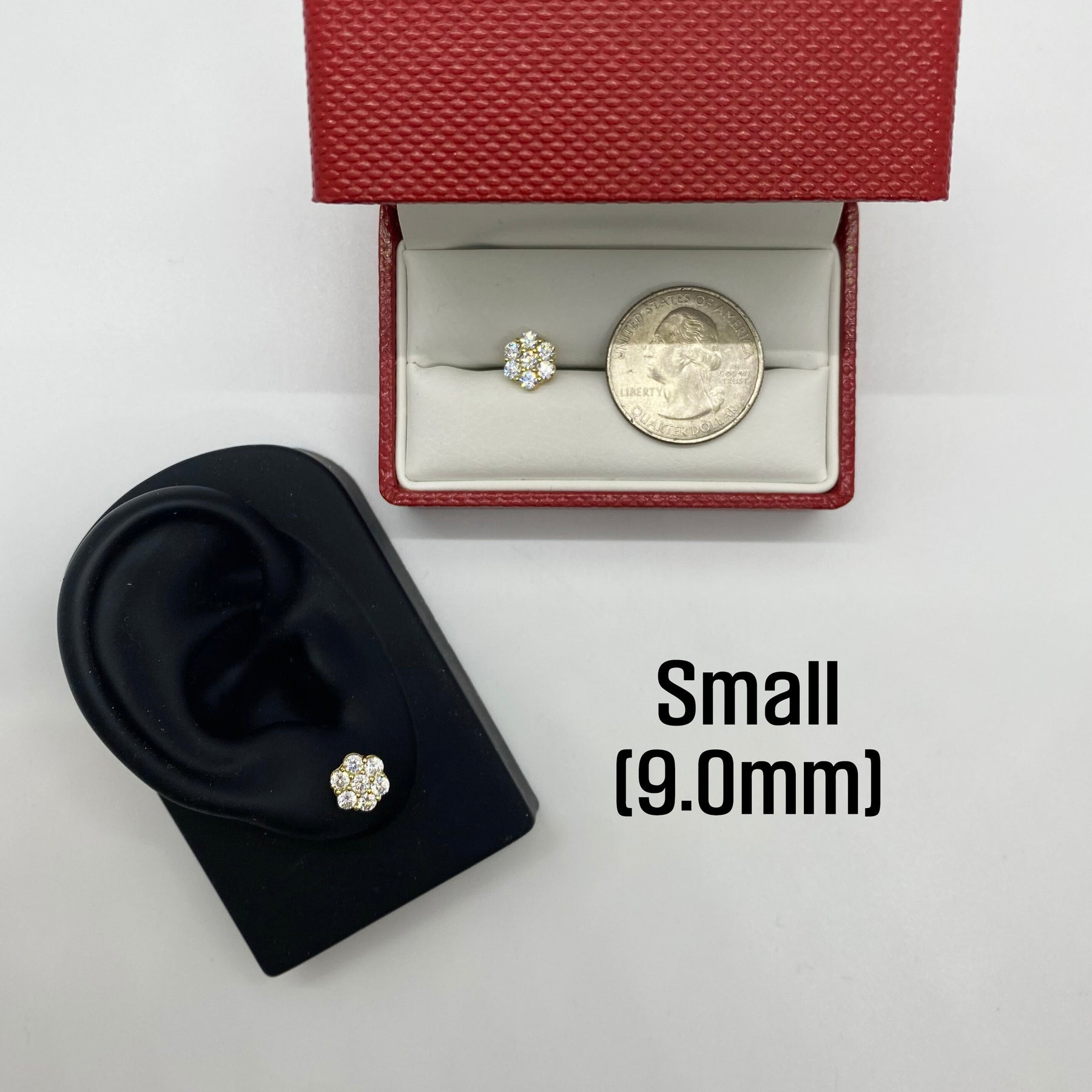 These 10k solid gold flower CZ hexagon stud earrings offer a stylish and timeless touch to any outfit. Featuring a stunning hexagon design adorned with sparkling cubic zirconia stones, these earrings are perfect for both men and women. The push-back closures ensure a secure fit, while the unisex style makes them a versatile accessory for any occasion. Ideal for gifting or personal use, these earrings add a touch of elegance to your everyday look. Celebrate special moments with these classic and refined earrings.