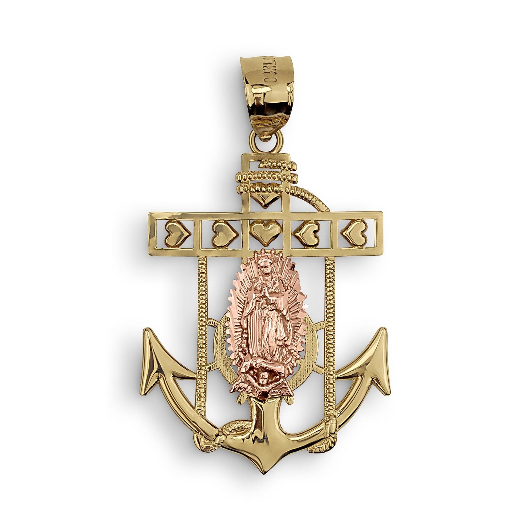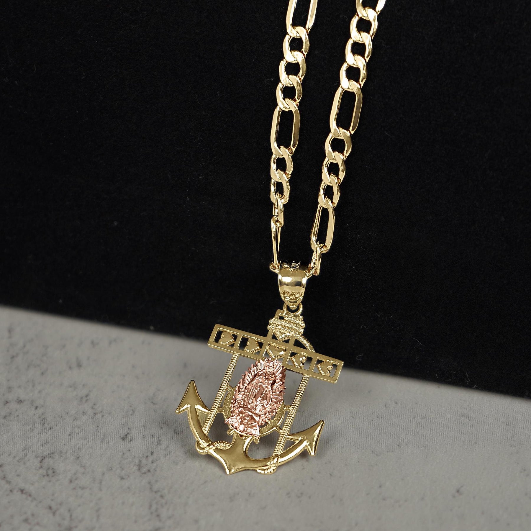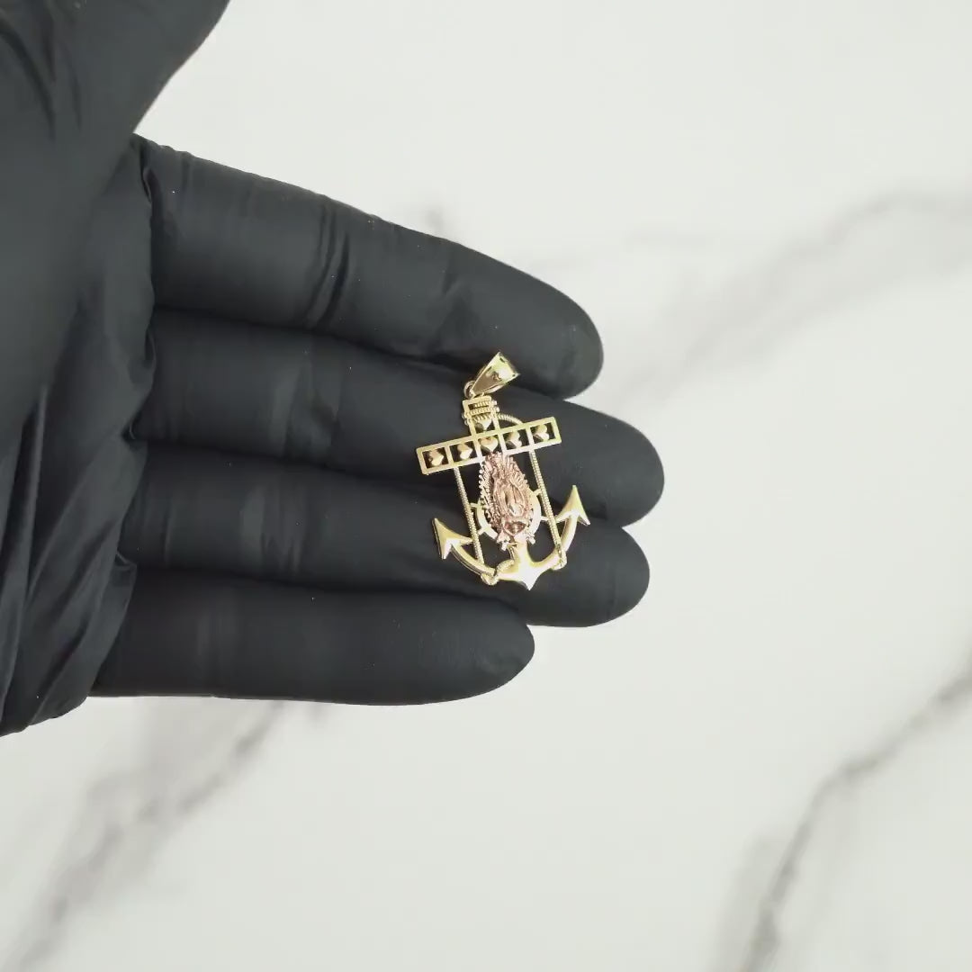 14k Gold Divine Two-Tone Guadalupe Anchor Pendant Necklace