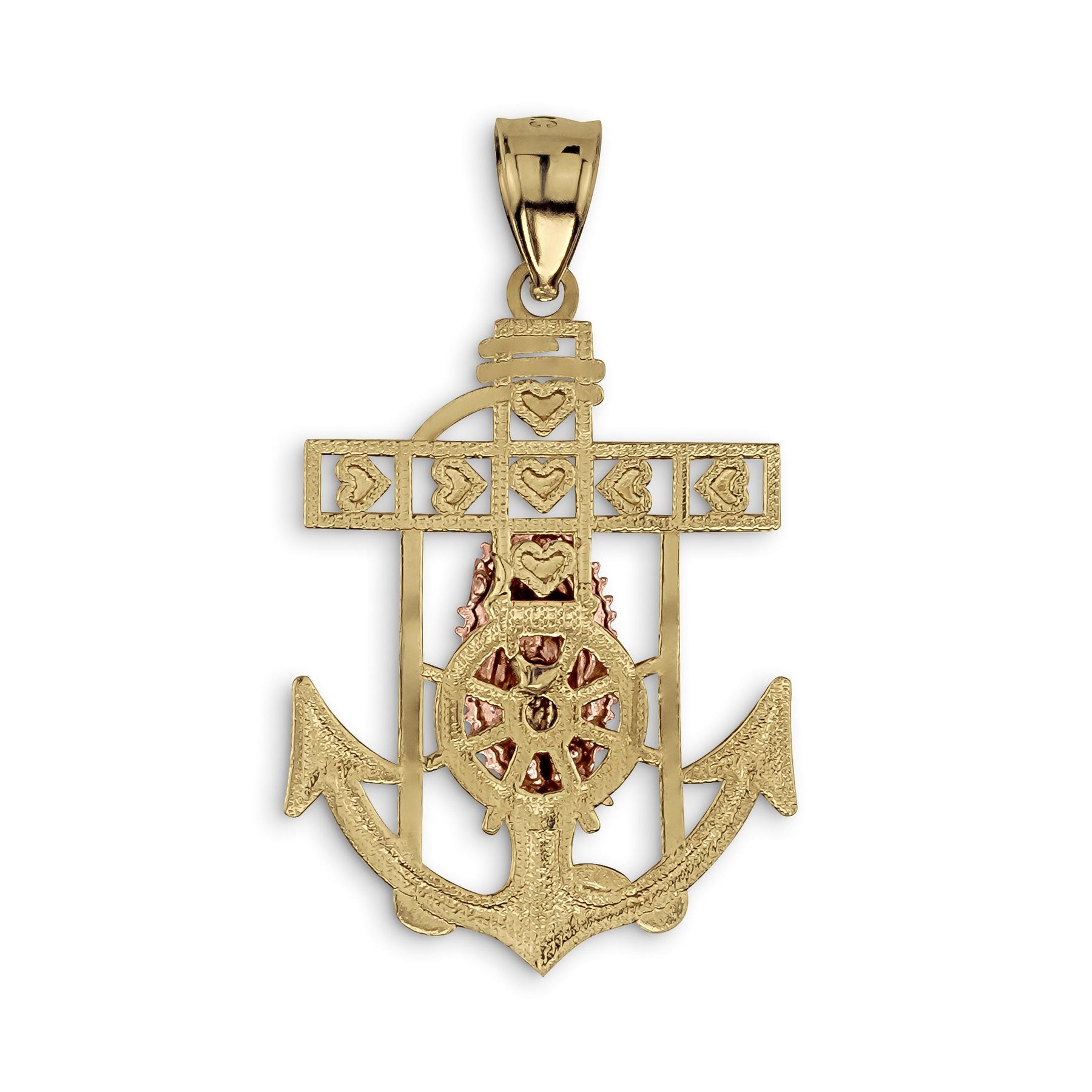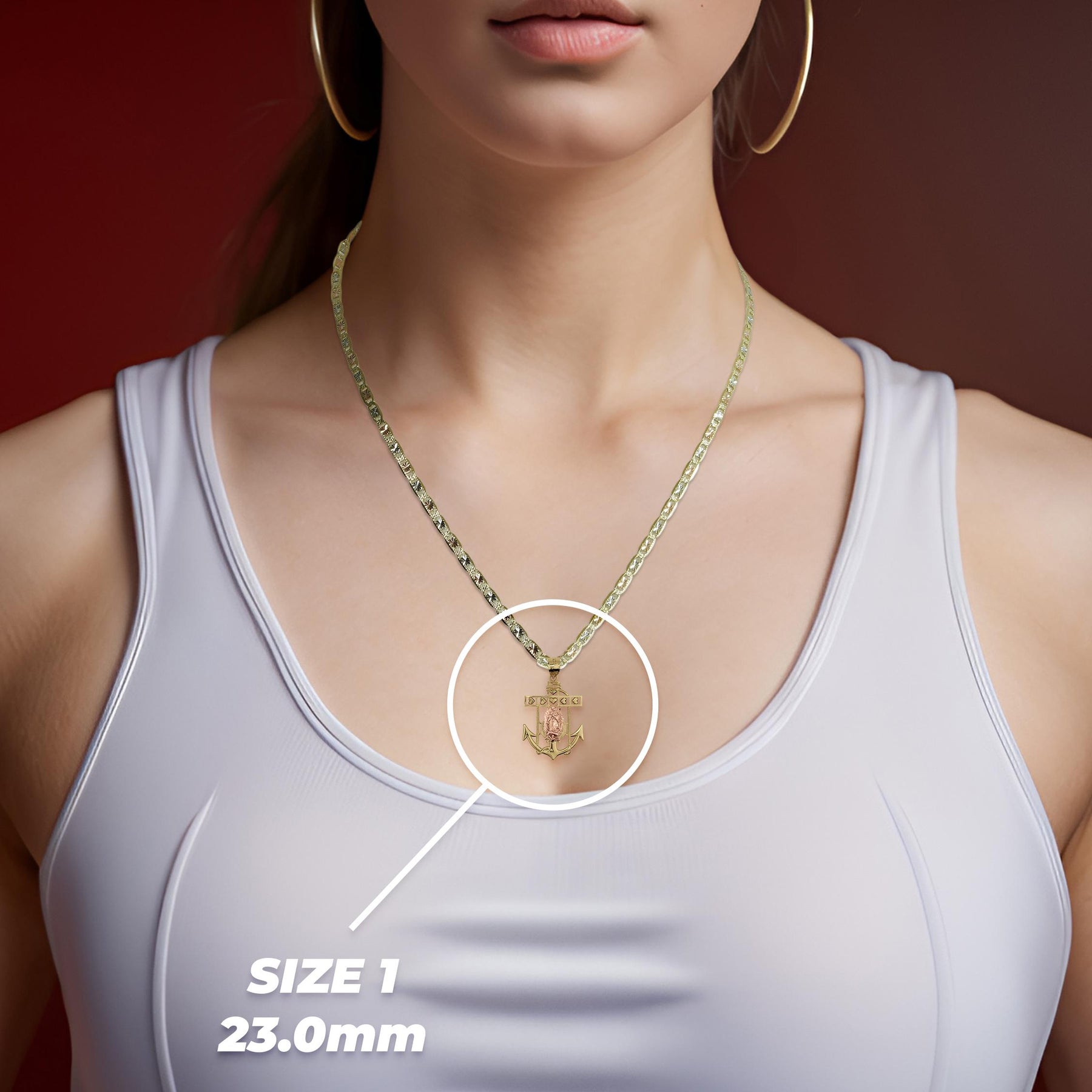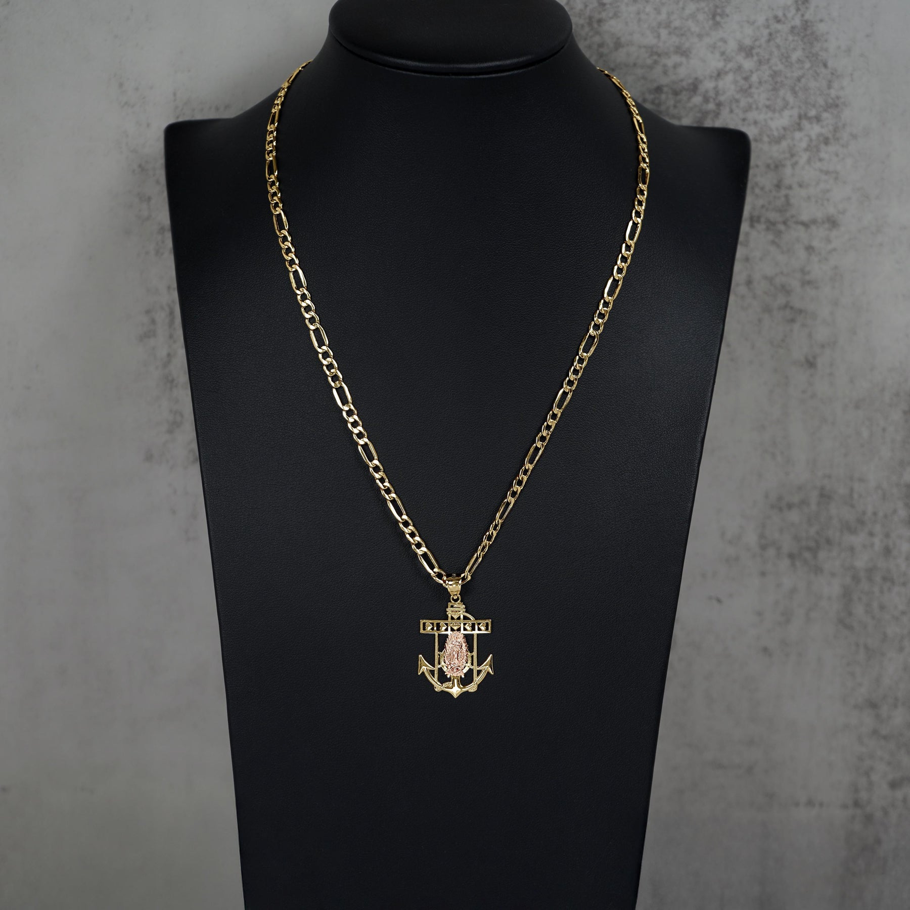 14k Gold Divine Two-Tone Guadalupe Anchor Pendant Necklace