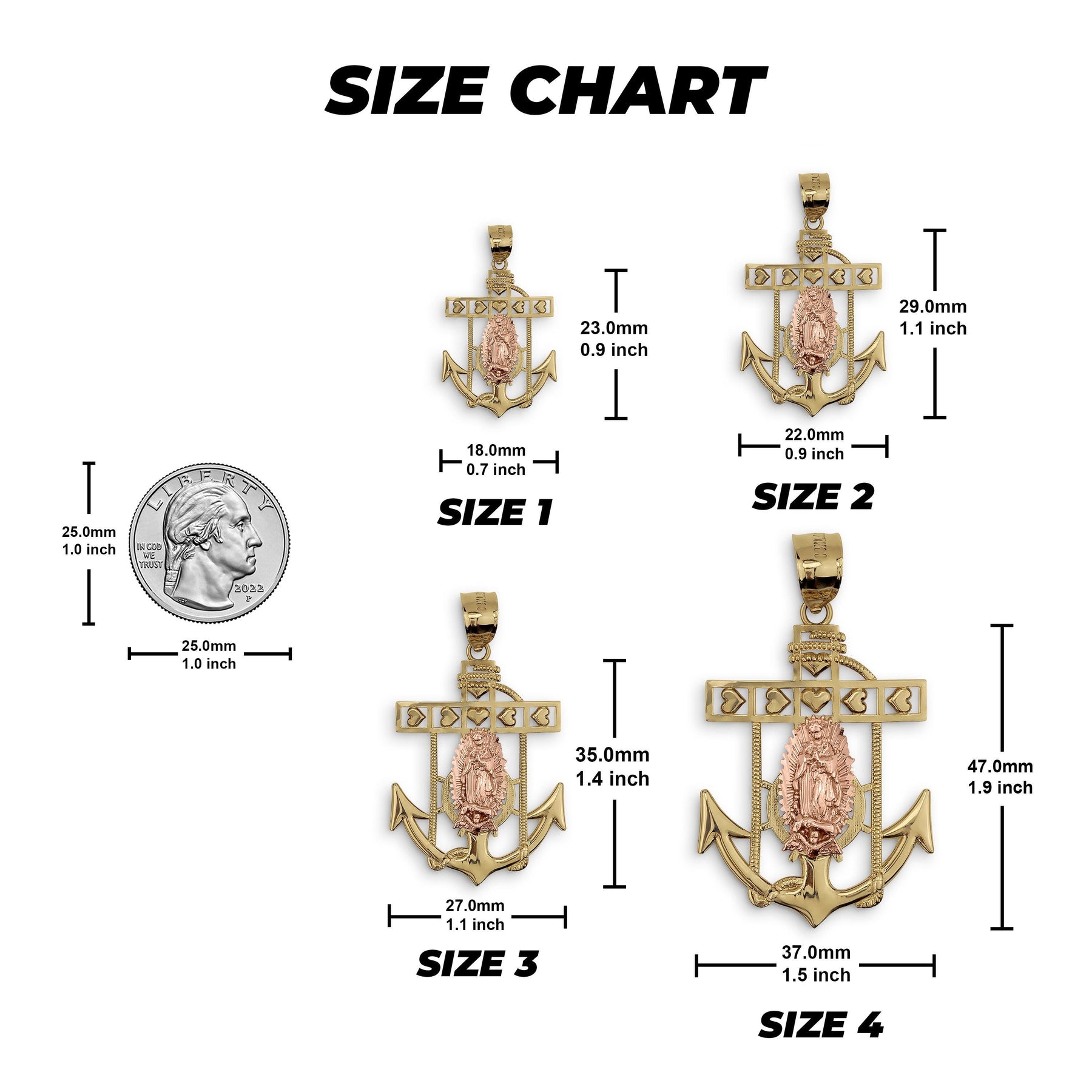 This exquisite 14k Solid Gold Guadalupe Virgin Mary Anchor Pendant Necklace combines timeless religious symbolism with modern elegance. Crafted from high-quality solid gold, the two-tone design features the Virgin Mary encircled by an anchor, symbolizing hope and faith. Perfect for daily wear or special occasions, this necklace makes a thoughtful gift for women and girls. Celebrate faith and style with this beautiful, handcrafted piece of fine jewelry. Ideal for birthdays, anniversaries, or as a cherished keepsake.